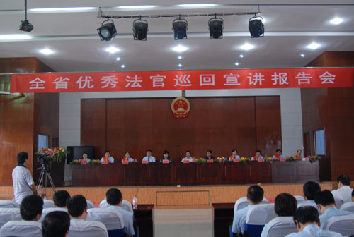 9月16日上午,省委政法委组织的全省优秀法官巡回报告团到我院进行宣讲。县委常委、政法委书记刘健向大会致辞,省委政法委信息处处长、宣讲团领队楚耀华在会上讲话,党组书记、院长李亚锟主持会议并讲话,我院100余名干警聆听了报告。