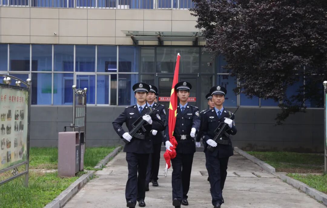 上午8时,全体干警身着制服、精神抖擞,在办公大楼前整齐列队肃立。法警们迈着铿锵有力的步伐,护卫着五星红旗走上升旗台。伴随着雄壮激昂的国歌,鲜艳的国旗迎风舒展,缓缓升至杆顶。干警们目光坚定,向国旗致以最崇高的敬意,心中的爱国之情与职业自豪感在这一刻强烈共鸣。