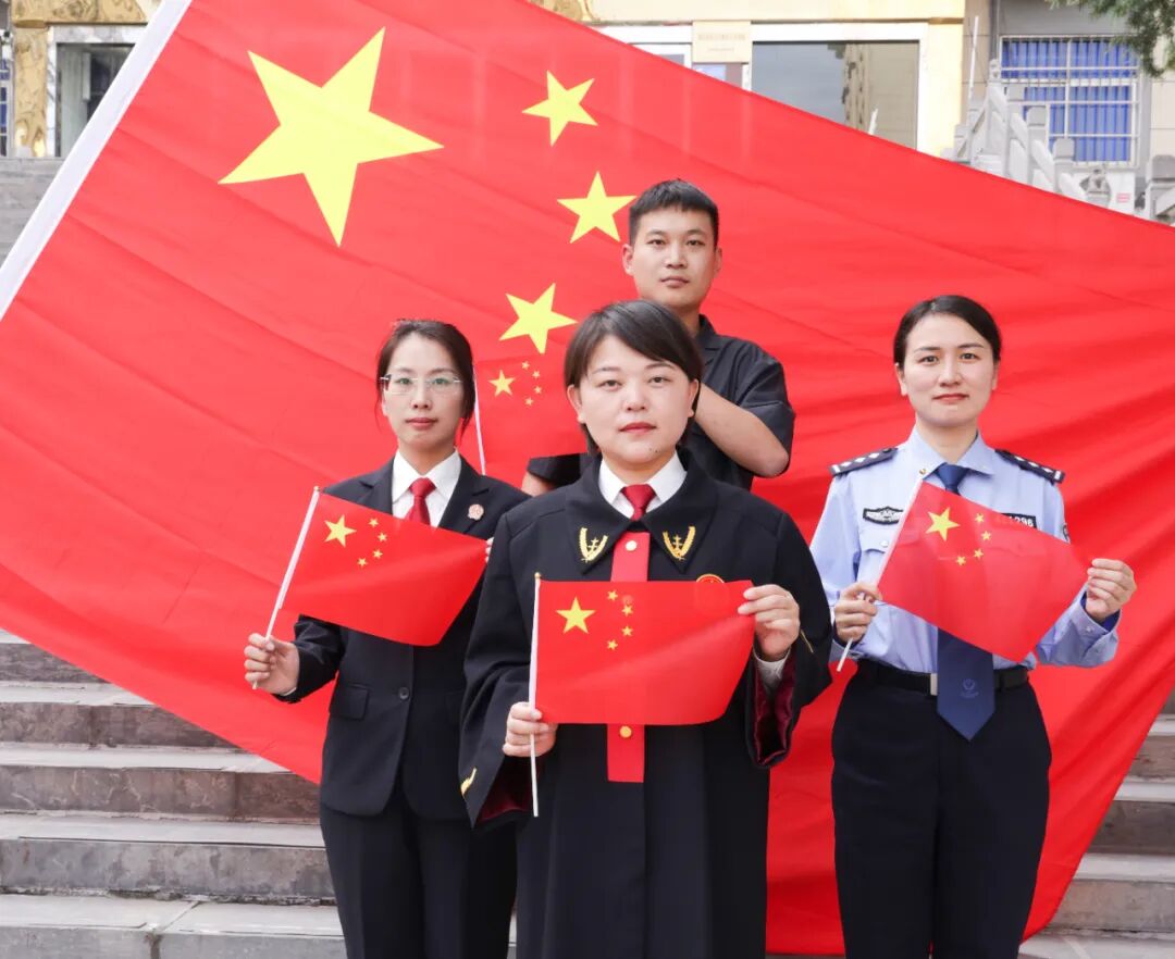 家有山河锦绣,国有岁月芳华,有一种骄傲,叫“五星红旗”,有一种表白,叫“我爱你中国!”干警们怀着崇高的敬意与国旗“合影”,向伟大的祖国母亲表达着深深的敬意。