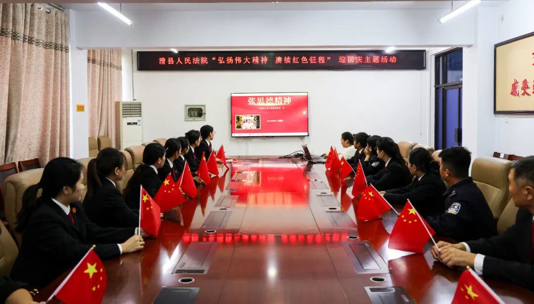 为弘扬伟大精神,激发干警爱国热情与奋斗激情,9月29日,滑县法院开展“弘扬伟大精神 赓续红色征程”迎国庆主题活动,干警们集中观看中国共产党人的精神谱系,46张图片生动展现了百年党史中一代代中国共产党人顽强拼搏、不懈奋斗的壮阔历程。让干警们在视觉与听觉中接受了一场深刻的党性洗礼。