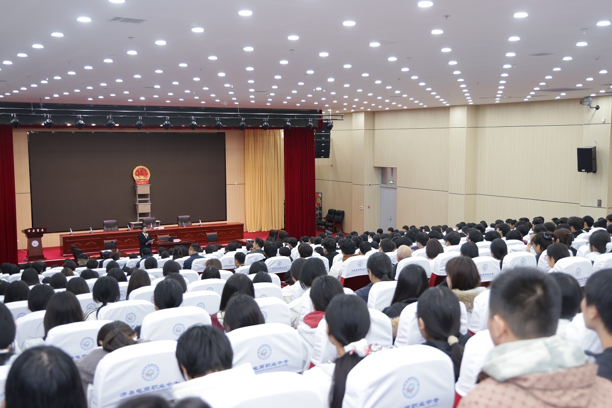 国徽高悬,法槌声响,但这一次,庄严肃穆的法庭不是设在法院,而是搬进了滑县电商职业中专。2025年10月17日,滑县法院刑事审判庭将一起真实的“掩饰、隐瞒犯罪所得”案件庭审,搬到了滑县电商职业中专的校园内,500余名师生“零距离”观摩了庭审的全过程,沉浸式接受了一场深刻的法治教育。
