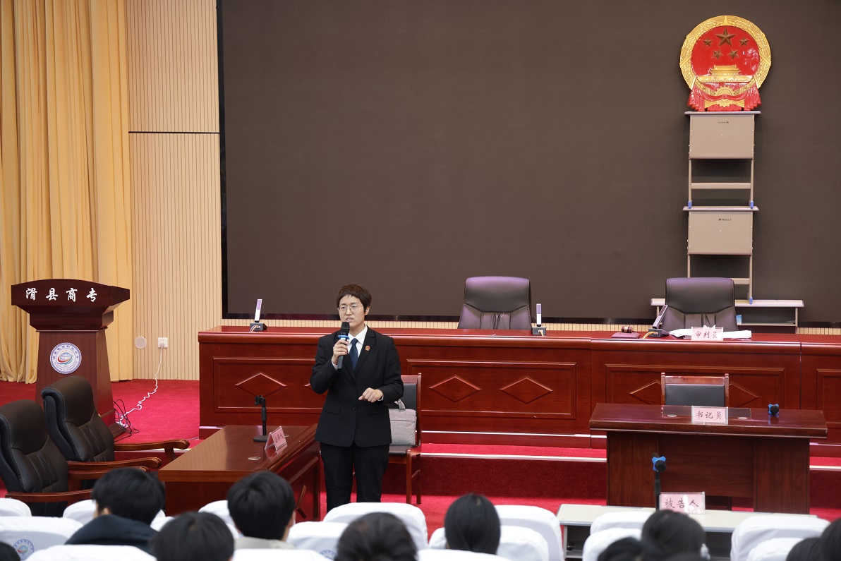 庭审前,滑县法院刑事审判庭副庭长张翠丽向师生们讲解了庭审知识,如法庭组成、庭审秩序、当事人权利义务、法庭纪律以及简要案情,让参加的师生们对庭审有了初步的了解和认识。