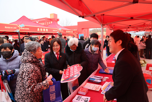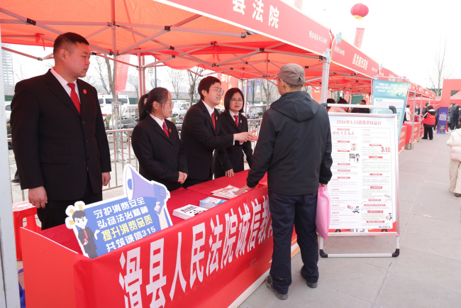 古会现场人流如织、热闹非凡,干警们紧扣3·15国际消费者权益日与诚信教育主题,通过悬挂横幅、摆放普法展板、现场答疑解惑等方式,重点宣传《消费者权益保护法》《民法典》等法律法规,围绕消费维权、防范诈骗、诚实守信、合同纠纷等与群众生产生活息息相关的内容,用通俗易懂的语言以案释法,引导群众增强诚信意识、法治观念,学会运用法律武器维护自身合法权益,营造了“知法、学法、守法、用法”的良好氛围。