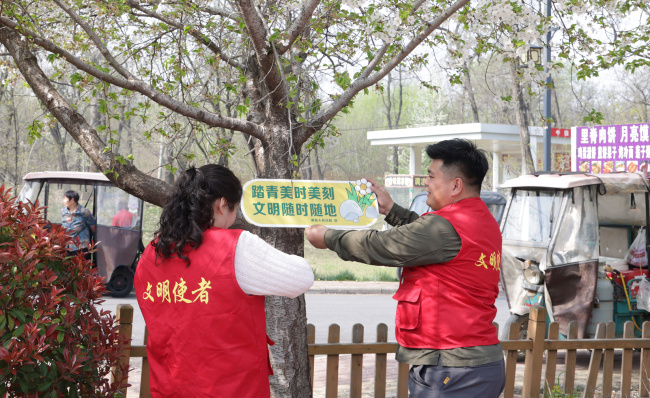 针对前来春游的小朋友们,志愿者们用通俗易懂、生动有趣的语言,讲解要爱护花草树木、遵守公共秩序等内容,通过互动问答、现场引导的方式,让孩子们在轻松氛围中树立文明意识、法治观念,从小养成爱护环境、文明有礼的良好习惯。